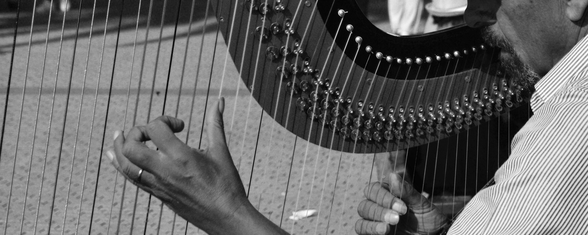La melodía que desprendía con su arca llenaba cada rincón de la estación de tren. Parecía como si las notas estuvieran flotando a nuestro alrededor, deslizándose suave entre los transeúntes, escapando por las ventanas. Sus dedos se movían suavemente entre las cuerdas, esos dedos tan desgastados por el duro trabajo, se convertían en frágiles y delicados, sabían como acariciar el arpa, cómo darle amor.