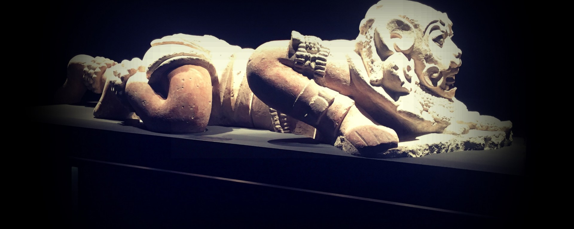 Escultura de un hombre con atributos de jaguar. Exposición «Los mayas. El enigma de las ciudades perdidas». Museo Marq (Alicante).