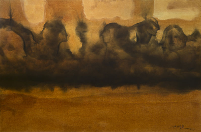 Tortuguero. 2015. Humo, carboncillo y óleo. Miguel Hernández Bastos (1961, Heredia). Exposición ‘Soplo de vida’ en Centros de Estudios Brasileños.
