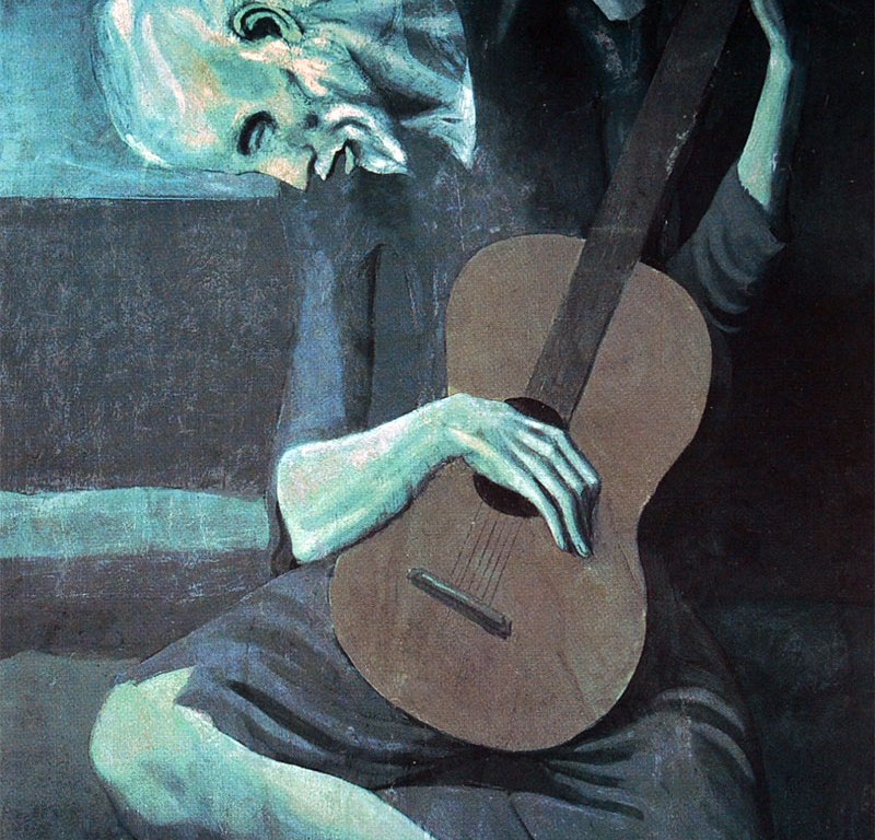 El viejo guitarrista, 1903. Óleo sobre tabla (122.9 x 82.6 cm). Época azul de Pablo Picasso (1881-1973). La obra se encuentra actualmente en el Art Institute, Chicago.