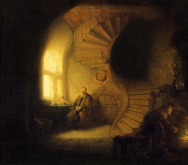 Filósofo meditando, 1632. Óleo sobre tabla. Rembrandt (1606-1669). Museo del Louvre.